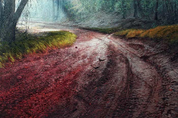 Red ground wood's road, 24x36"/61.5x91.5cm, oil on canvas, 2011